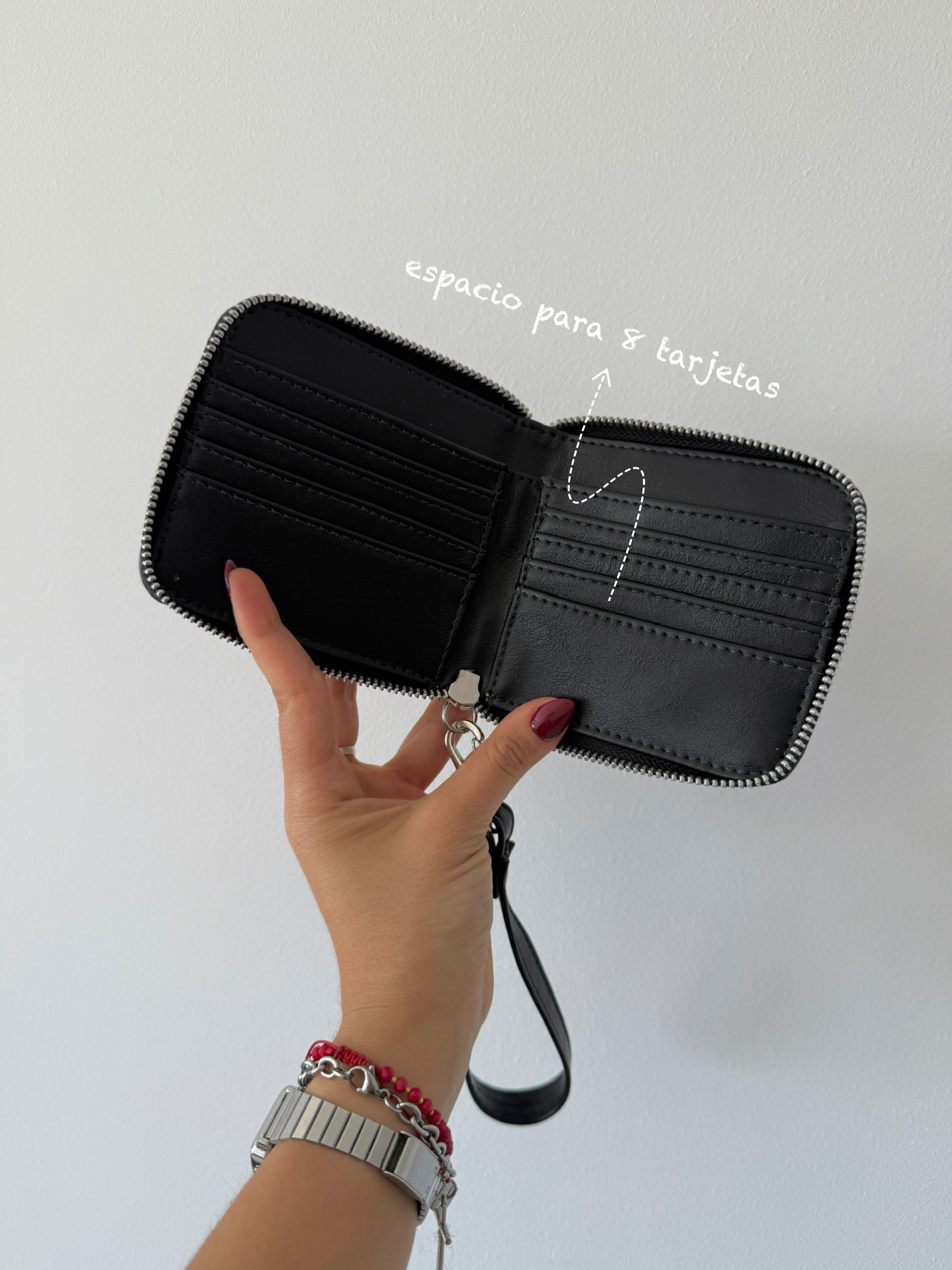 Correa desmontable, sirve para llevar la billetera colgada o engancharla en el sujetallave de nuestras carteras ❤️